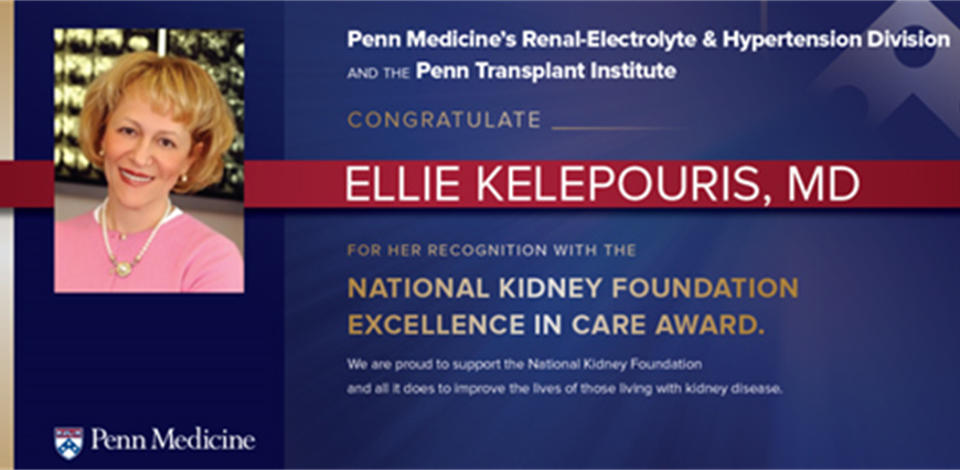 Dr. Ellie Kelepouris has received an Excellence in Care Award from the NKF in honor of her work. She is a Nephrologist and a faculty member of Penn Renal Electrolyte...
