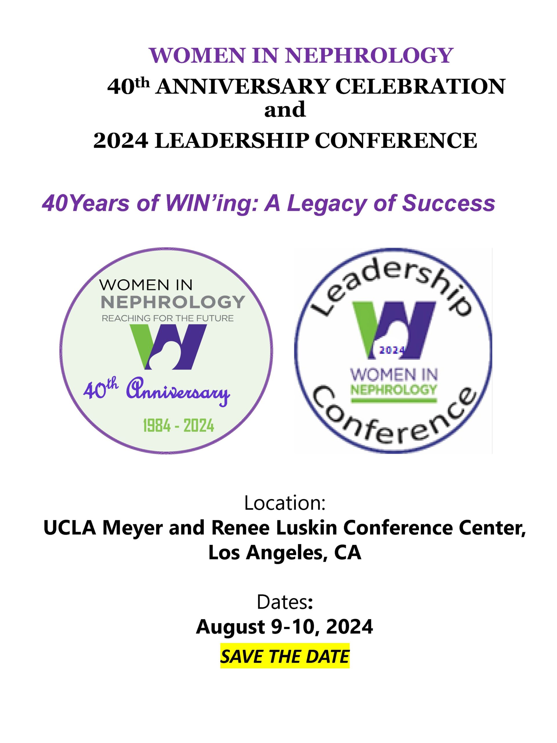 Celebtrate 40 Years of WIN’ing: A Legacy of Success. Keynote speakers include Katherine R. Tuttle, MD and Julie Ingelfinger, MD.
